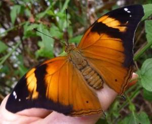 Бабочка с яркой желтой окраской, помогающей ей умело маскироваться под осеннюю листву. История ее появления в научном мире очень похожа на миф или сказку. Дело было в далеком 1777 году. По джунглям Малайзии гулял молодой ученый-орнитолог. Земля была устлана желтой листвой. Намереваясь сделать очередной шаг, мужчина увидел, как один из листиков взял и полетел. Приглядевшись, он понял, что это бабочка. Размер ее был невелик – 5-7 см. Он тут же дал ей название «осенний лист», и вскоре она стала узнаваемой. Сегодня это прелестное легкокрылое создание встречается в Австралии, Индии и Южной Азии. Манера ее передвижения быстрая, траектория полета прямая. Такая крылатка чаще всего летает в одиночестве, она любит карьеры вдоль деревенских дорог и небольшие поляны. Прекрасно повторяя форму листа, она защищает себя от хищников. И делает это мастерски – пятна, имитирующие плесень на мокрой листве, рельефный рисунок, прожилки и ниточки. Чтобы напиться влагой, бабочка часто приседает на мокрые камни или песок. Если понаблюдать за ней пристально, спугнув с насиженного места, то через несколько минут можно увидеть такую картину – она вернется и сядет так, что разглядеть ее будет довольно сложно. Так она демонстрирует искусство маскировки.