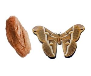 Samia Cynthia (Шелкопряд Айлантовый) – бабочка из вида павлиноглазок. Средний размер взрослой особи – 10-12 см. Человек использует гусениц этой крылатки для получения шелка. Но вид этой бабочки не является одомашненным, как, к примеру, Шелкопряд Тутовый. Место обитания обширно – Китай, Малайзия, Индия, Филиппинские острова и Япония. Крылья раскрашены в приглушенные, мягкие оттенки. Они бархатистые и переливаются перламутрово-серебристым блеском и золотисто-розовым мерцанием. Тельце насекомого тоже мохнатое, а милые усики придают ему еще большее очарование. По размеру представители этого вида достаточно крупные, а период их жизни продолжается до 4-6 дней. Образ жизни этой крылатки ночной.