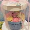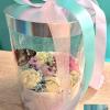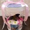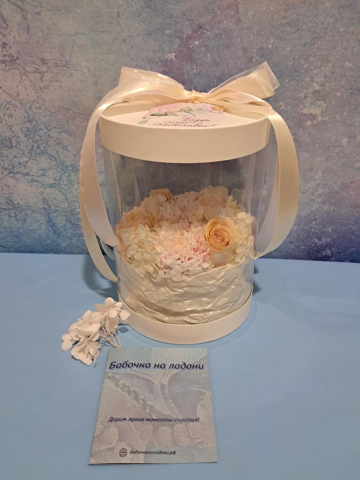 Цветочные композиции в прозрачных тубусах позволяют наслаждаться видом живых цветов и наблюдать за тропическими бабочками со всех сторон!